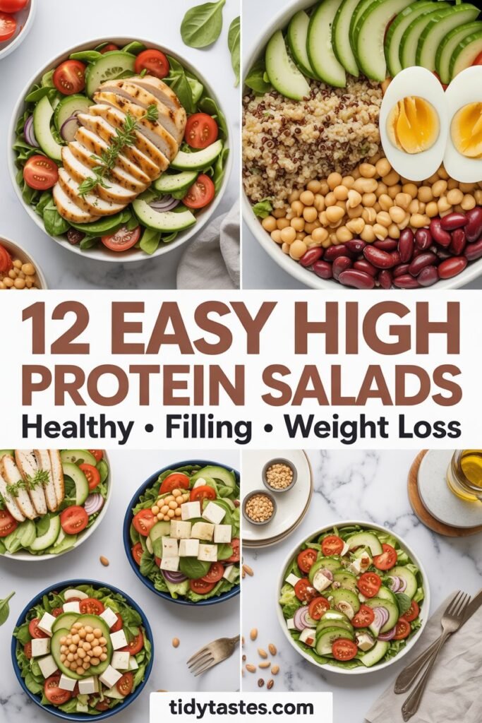 Meal prepping these 12 high protein salads has completely changed how I stay on track with weight loss.