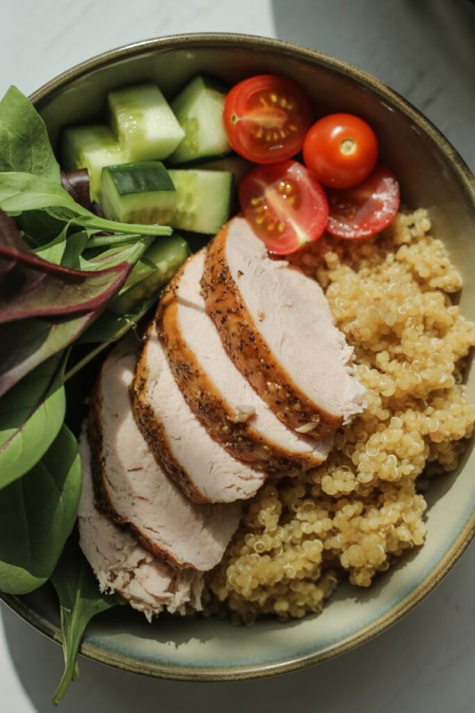 The turkey adds lean protein while quinoa provides complex carbs that keep me energized.