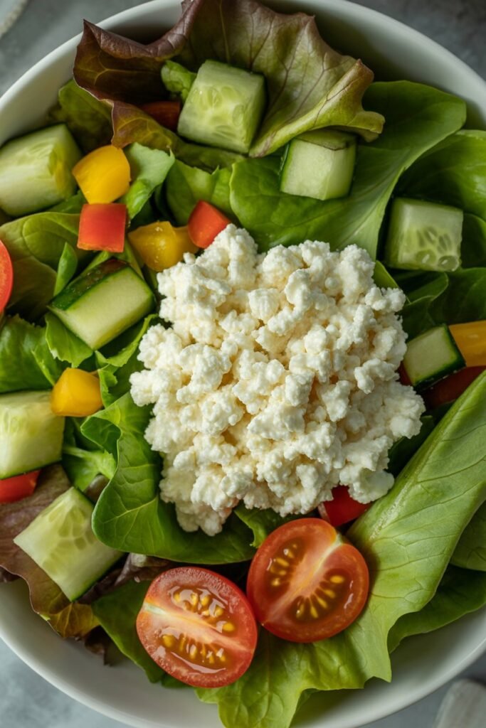 The creamy texture of cottage cheese with crisp vegetables makes it a satisfying and refreshing meal.