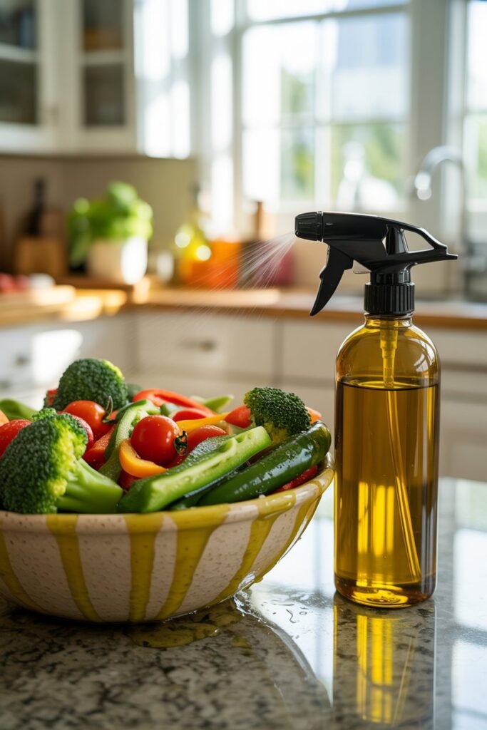 I once sprayed my vegetables until they were glistening. The result? Smoke and greasy texture.