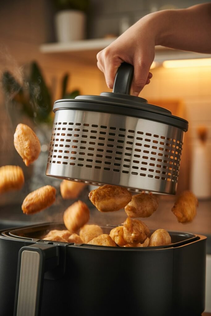 Air fryers work by circulating hot air around the food. If you pile everything on top of each other, the air cannot move properly. Instead of crisping, your food steams.