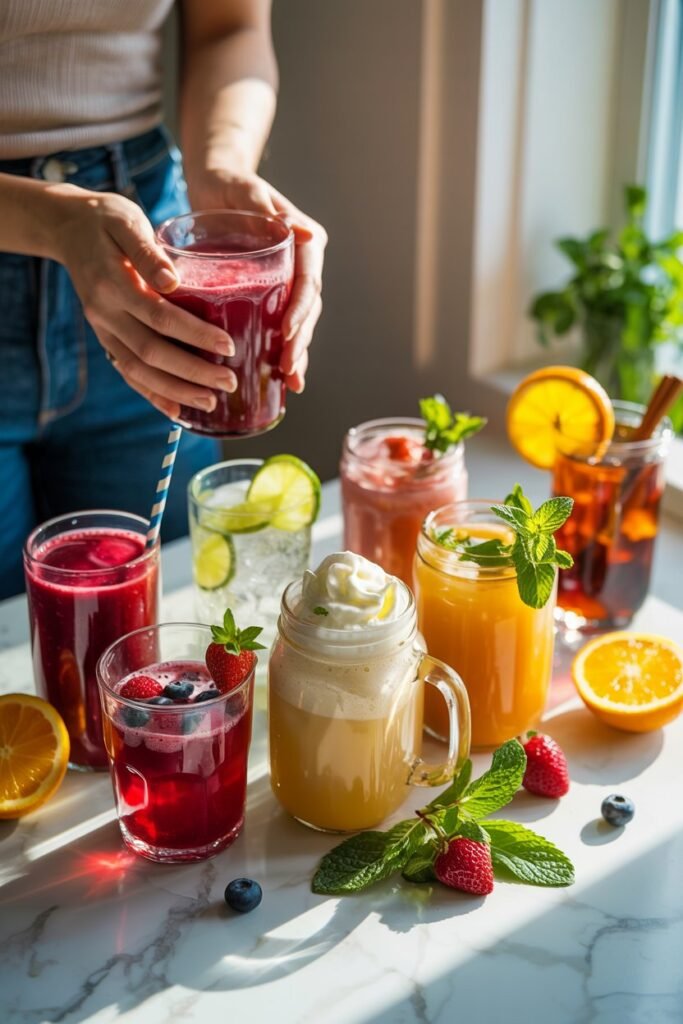 The best part? Each recipe is adaptable. Swap fruits, play with flavors, and make them your own. Whether you’re hosting a party, making something for your kids, or just treating yourself after a long day, these drinks will hit the spot.