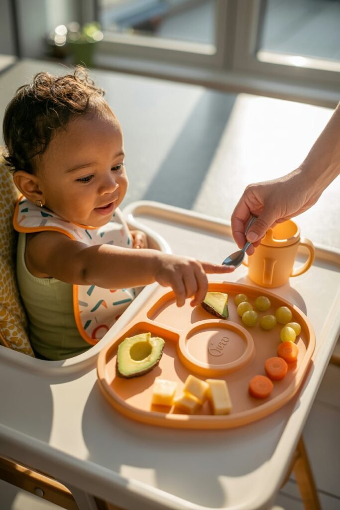 A balanced plate usually includes protein, whole grains, fruits and vegetables, and healthy fats, giving your little one energy and nutrients to grow and thrive.