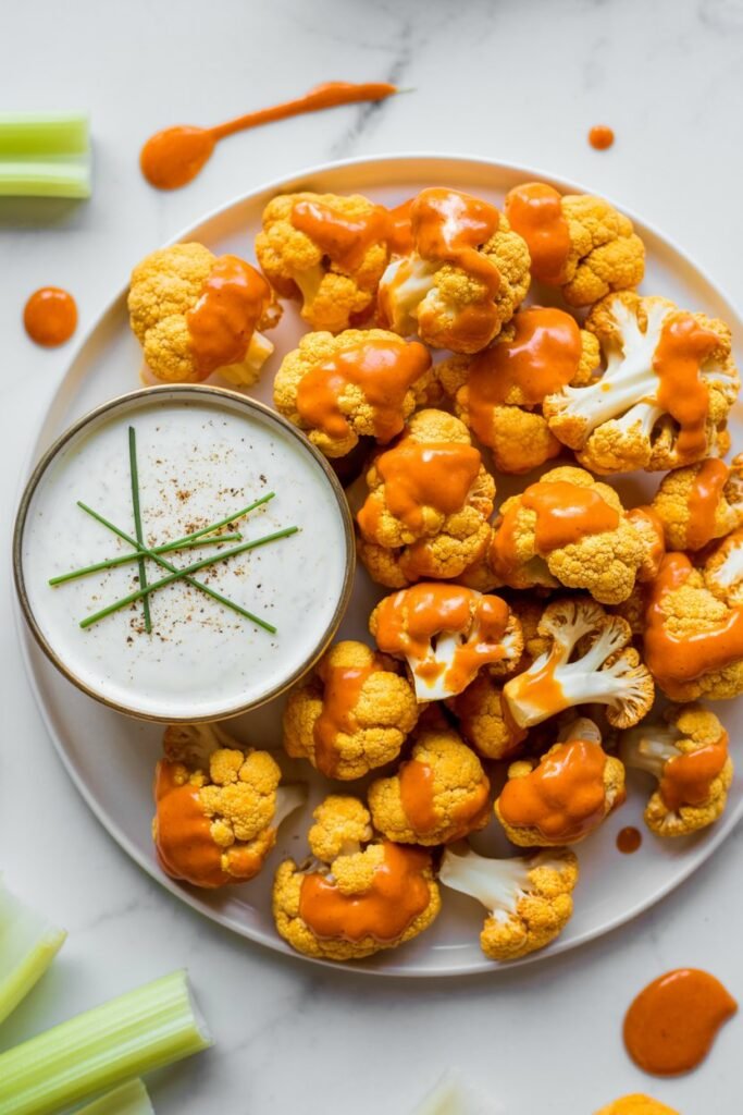 These buffalo cauliflower bites are spicy, crispy, and perfect as a plant-based snack or appetizer.