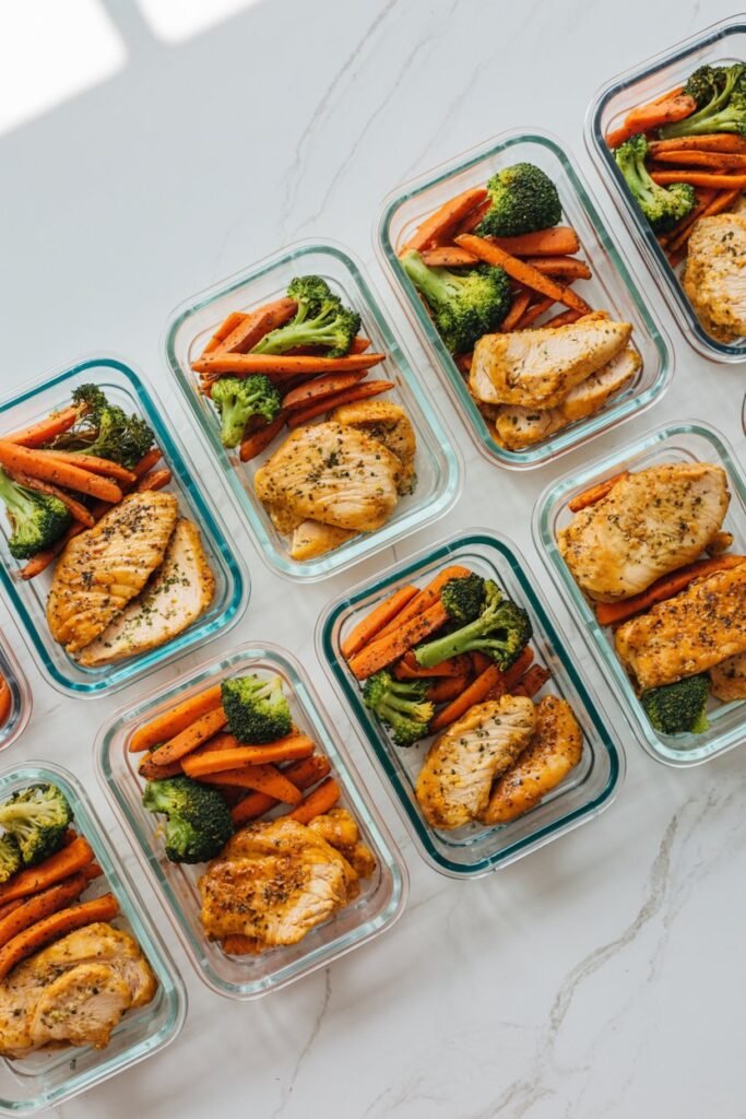 For proteins like chicken, fish, or tofu, I season them in advance and store them in the fridge. Vegetables can be sliced and lightly coated with oil or seasoning before storing in airtight containers.