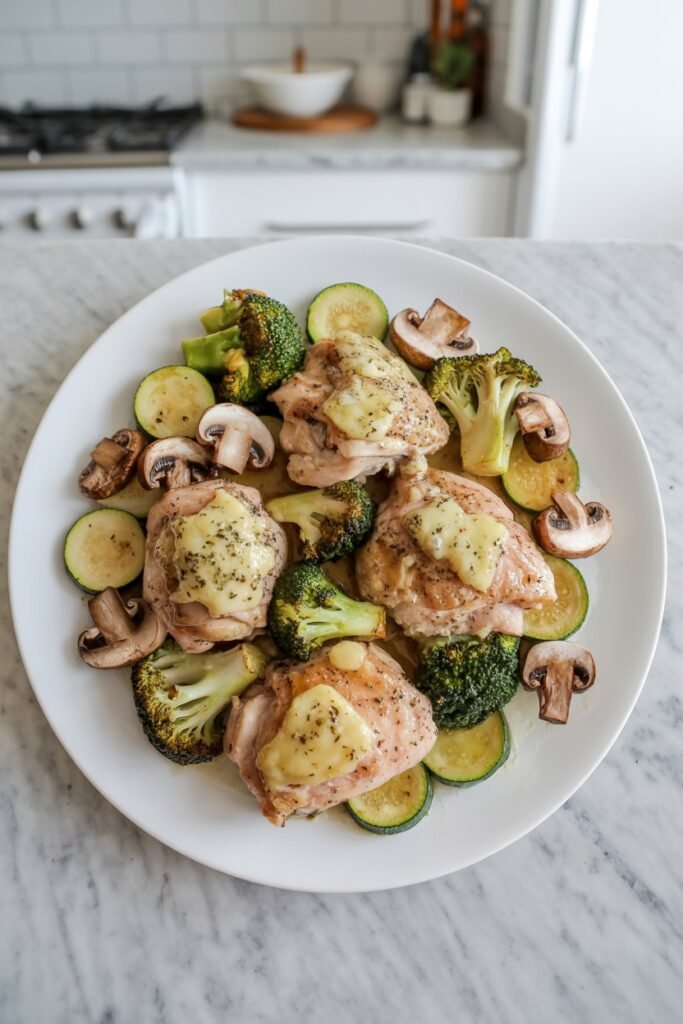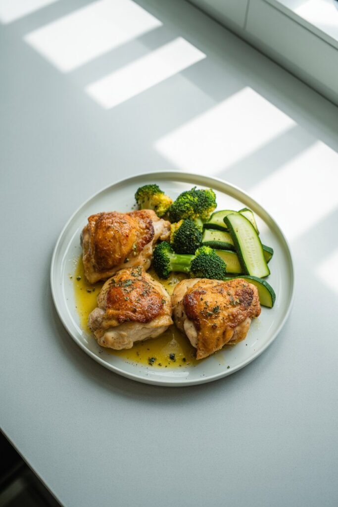 Chicken thighs stay moist and tender while the garlic butter sauce adds richness without extra effort.