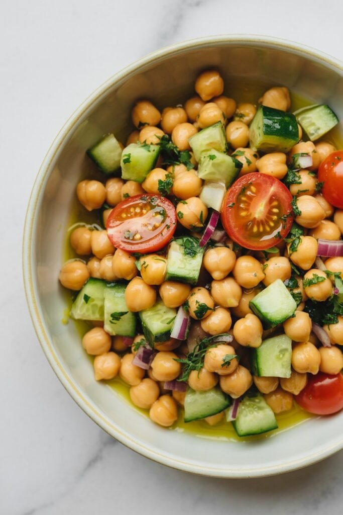 - 1 cup chickpea salad with cucumber, tomato, and lemon dressing