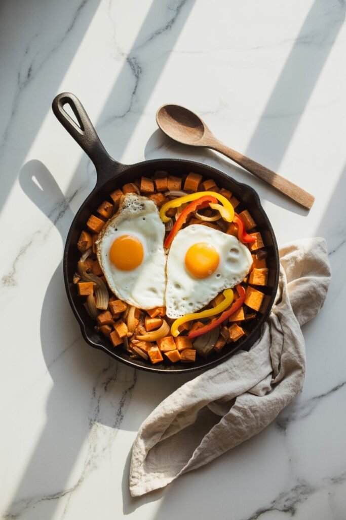 This paleo breakfast hash feels cozy and satisfying — sweet potatoes crisped just right, eggs cooked on top, and everything seasoned perfectly. It’s proof that healthy can still feel like weekend brunch.