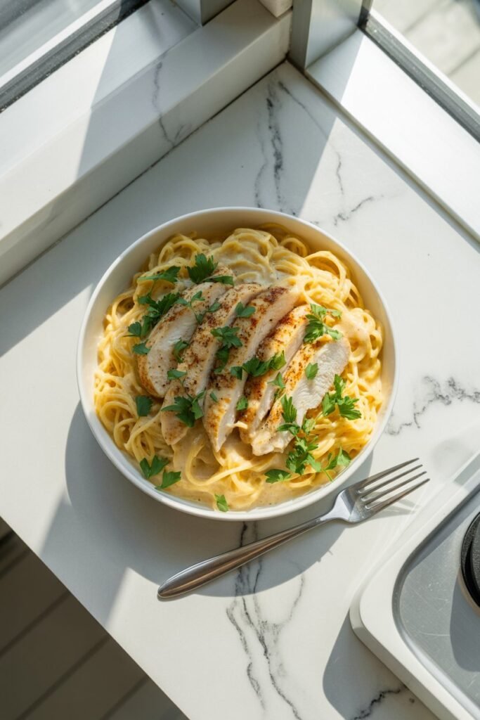When you need something that tastes like comfort food and fits your paleo goals, this one’s a winner. Juicy pan-seared chicken thighs coated in a garlicky ghee sauce, tossed with fresh zucchini noodles — it’s fast, flavorful, and feels like something you’d order at a restaurant.