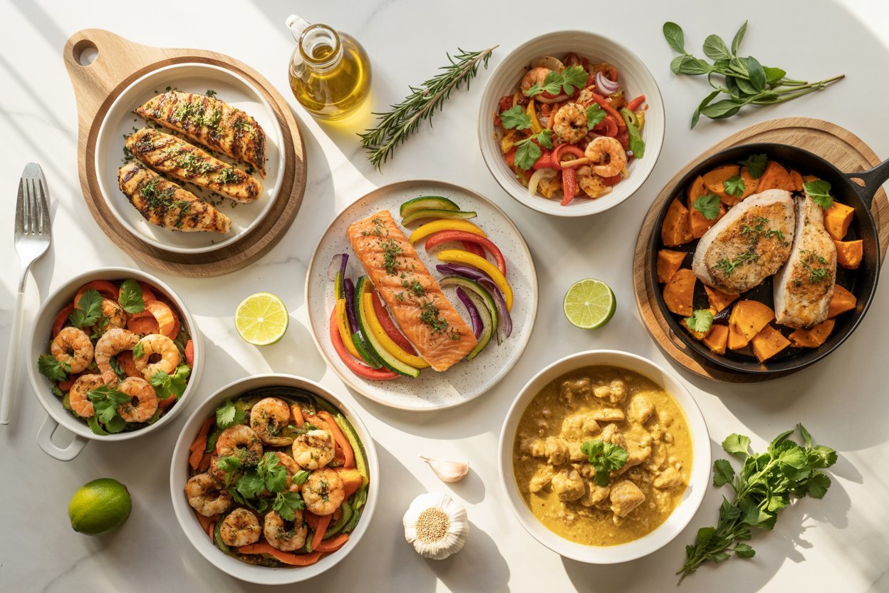 What I love about these recipes is how flexible they are. Most of them use ingredients you probably already have at home — think coconut milk, olive oil, herbs, and fresh veggies. You can mix and match flavors, swap proteins, or double up for leftovers that still taste amazing the next day.