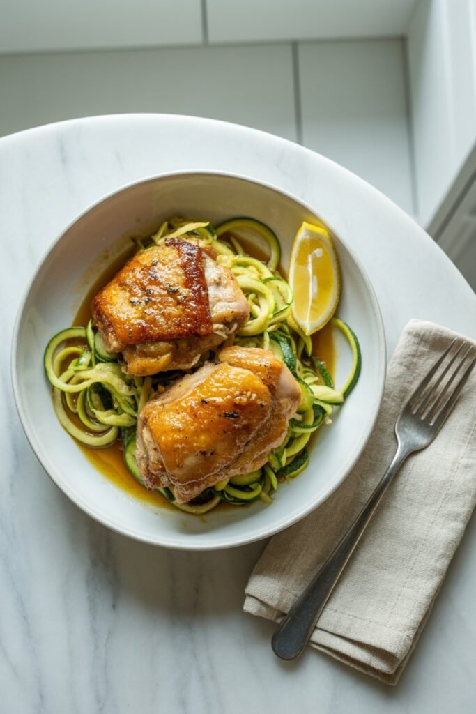 1. Garlic Butter Chicken Thighs with Zucchini Noodles