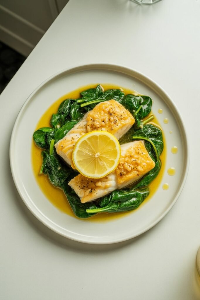 19. Garlic Butter Cod with Spinach