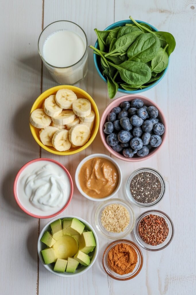 Milk helps everything blend smoothly, and chia or flax seeds are optional but helpful if you want extra fiber.