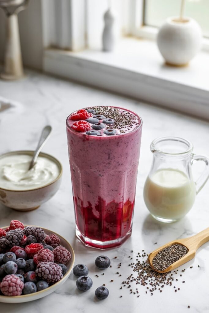 Bananas give natural sweetness and thickness, while berries add antioxidants and a slight tang that keeps it from tasting flat.