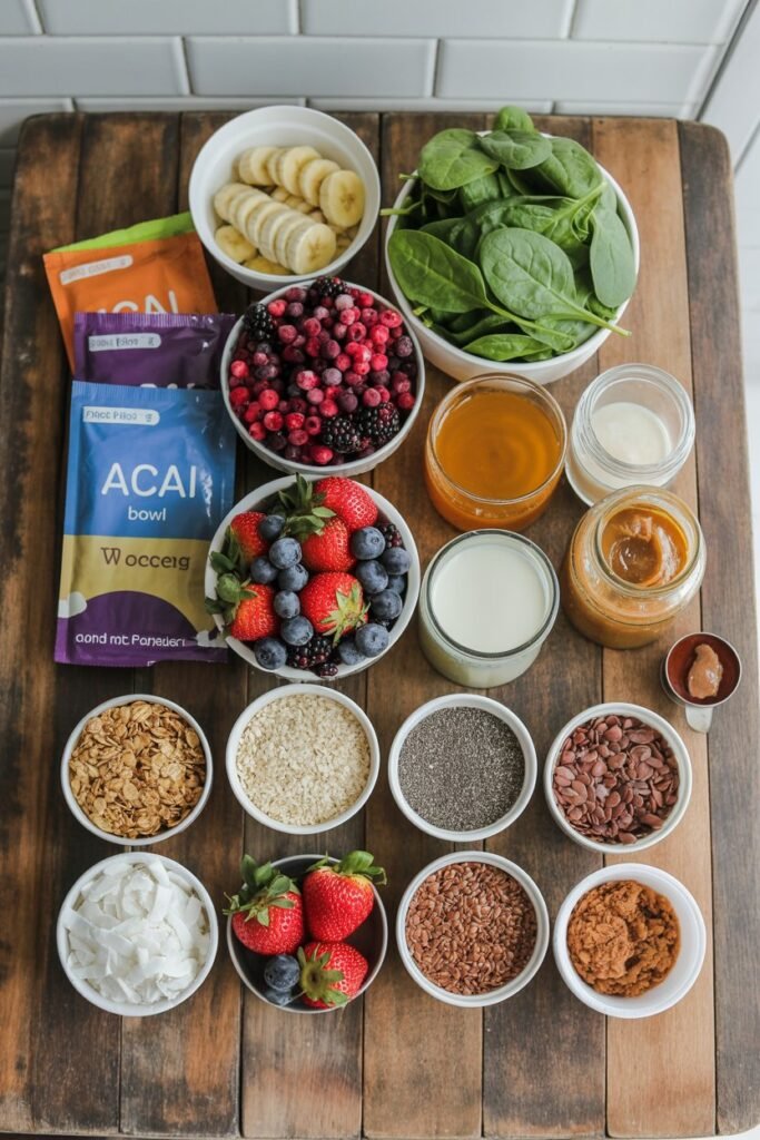 With these ingredients, you can create a visually stunning, nutrient-packed acai bowl that is both healthy and satisfying. Plus, itโ€™s perfect for quick breakfast prep or even a mid-morning snack.
