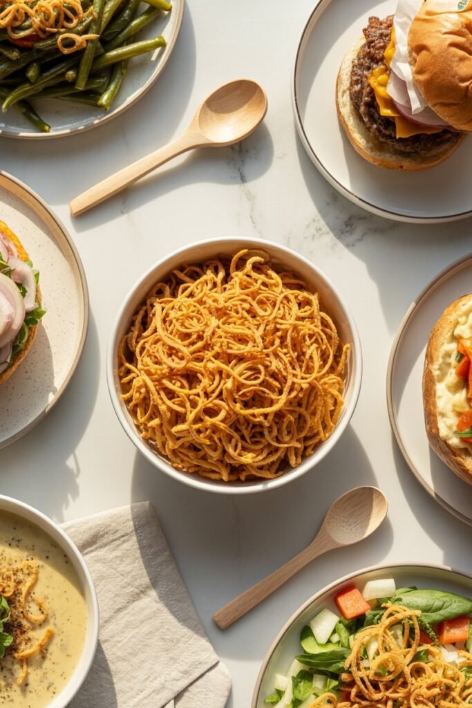 The best part about making a big batch of these crispy onions? You can literally sprinkle them on anything and instantly make it better. I’m not kidding — once you start, you’ll find yourself grabbing a handful for dishes that don’t even need toppings. Here are some of my favorite (and honestly, irresistible) ways to use them:
