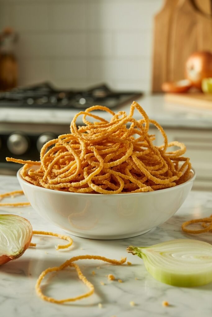 If you or someone in your home avoids gluten, don’t worry — these crispy onions still come out amazing. Just swap the all-purpose flour for cornstarch, and use gluten-free breadcrumbs. You’ll still get that same crunchy texture, just without the gluten. Honestly, they crisp up beautifully.