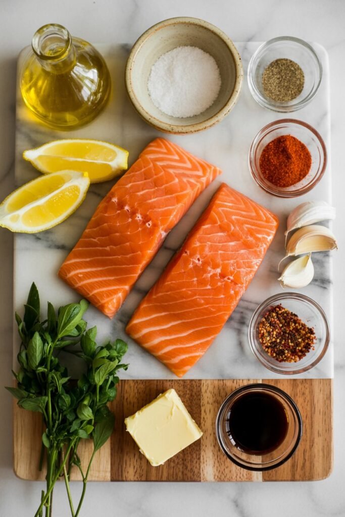 Before cooking, I lightly brush the salmon with olive or avocado oil. It locks in moisture, enhances flavor, and gives that slightly crisped edge that makes every bite so satisfying.