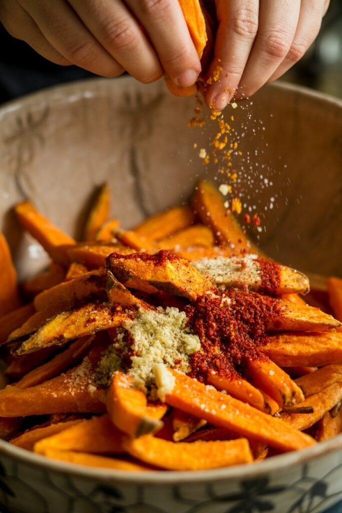 On days when I’m craving something bold, I toss my fries with paprika, cayenne, garlic powder, and black pepper. You get a smoky, slightly spicy edge that pairs perfectly with the natural sweetness of the sweet potato. If you like heat, you can adjust the cayenne to your taste—I usually like just enough to make my lips tingle.
