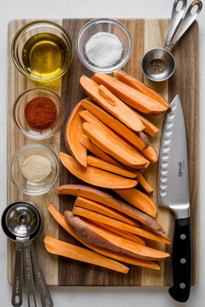 If you have time, I soak my sweet potato fries in cold water for 30 minutes. This removes some of the starch and helps them crisp up beautifully.