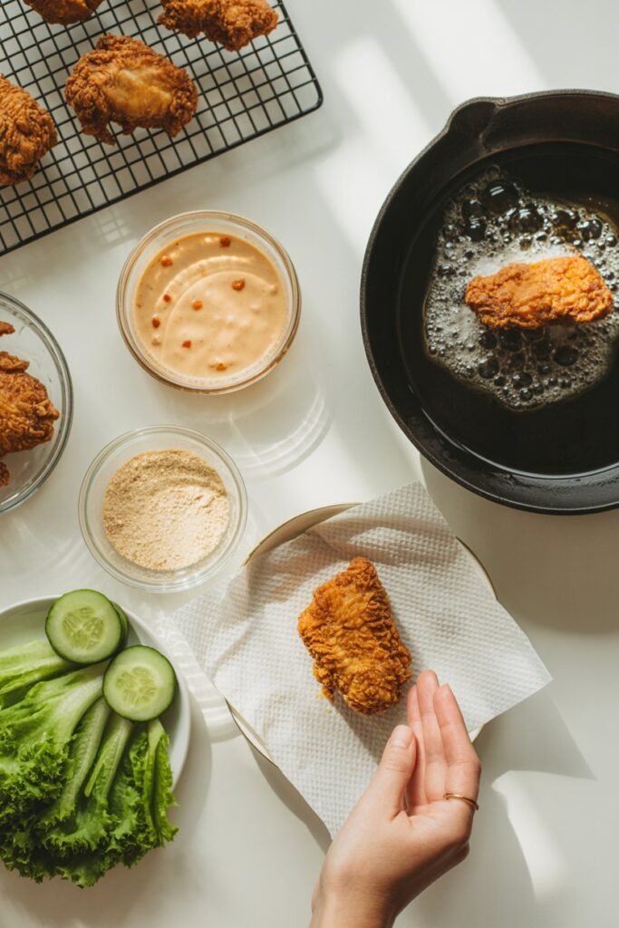 If you skip this step, the coating never really sticks the same way. I like to press a paper towel gently over each piece until it feels dry to the touch. This helps the buttermilk or egg cling better, which means the flour mixture forms that craggy, crispy texture you want.