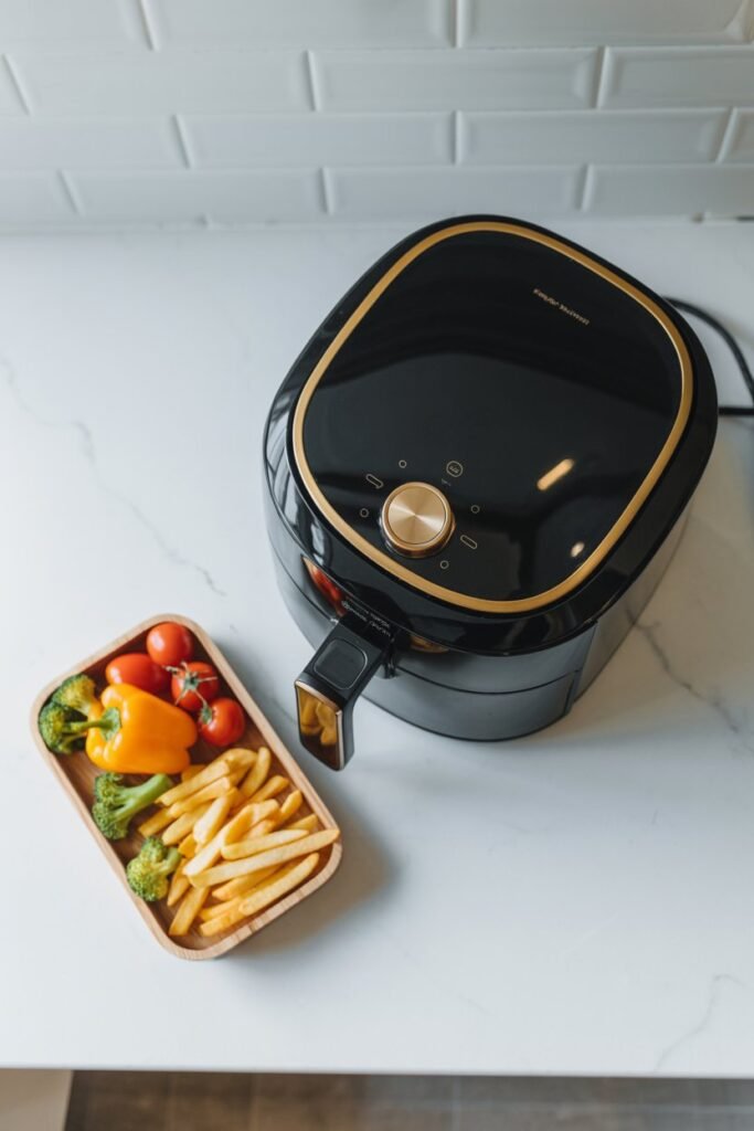 Cook healthier meals in style without compromising flavor or design. This sleek black air fryer with subtle gold accents lets you prepare crispy fries, roasted vegetables, and perfectly cooked chicken using little to no oil. It’s ideal for those who want convenience, efficiency, and style in the kitchen.