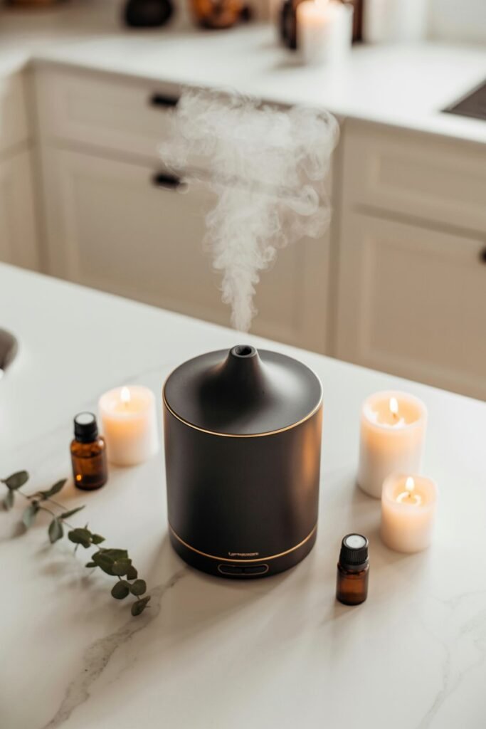 Best pick on Amazon: Black ultrasonic diffuser with gold accents and essential oil starter kit.