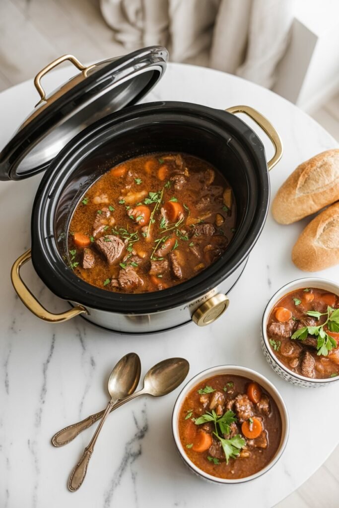Ideal for busy weekdays or relaxed weekends, this slow cooker lets you prepare tender meats, stews, and soups effortlessly. The black body paired with gold trim adds sophistication to your kitchen while remaining functional.