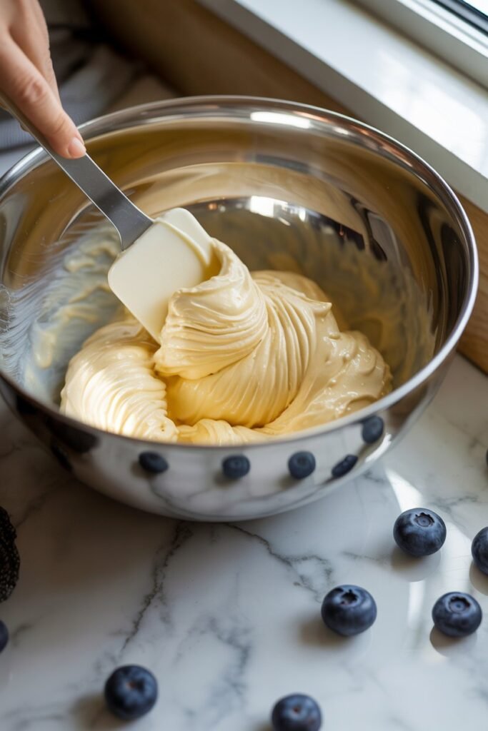 When adding the blueberries, I fold them in gently. You want them evenly distributed but still intact so you get those perfect bursts of flavor without turning the batter purple.
