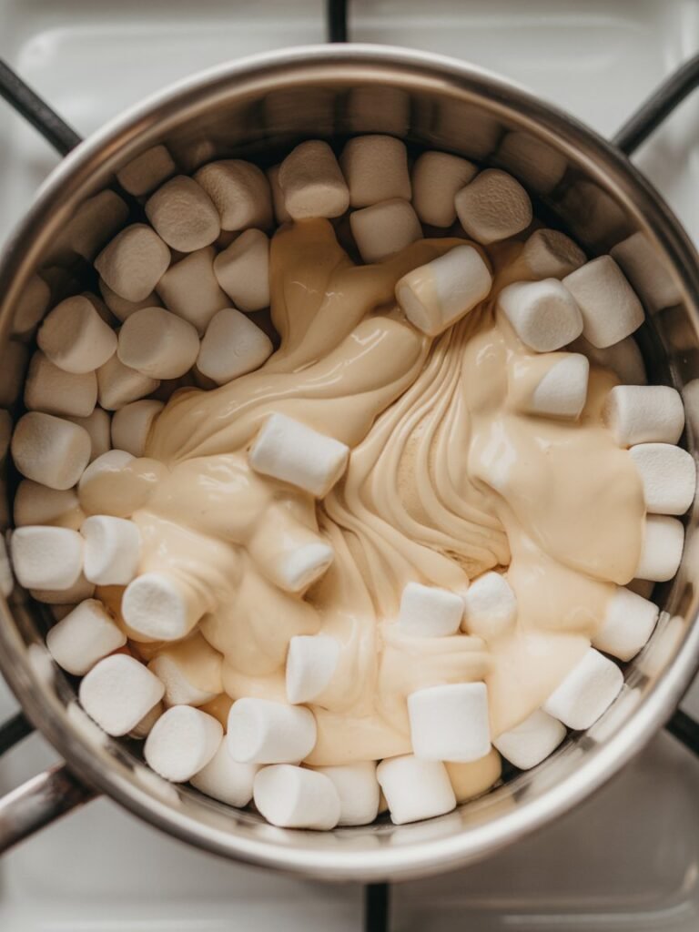 Add the mini marshmallows and stir gently until almost fully melted. Turn off the heat when about 90 percent melted—the residual heat finishes the job without overheating the mixture. - Add Vanilla and Salt