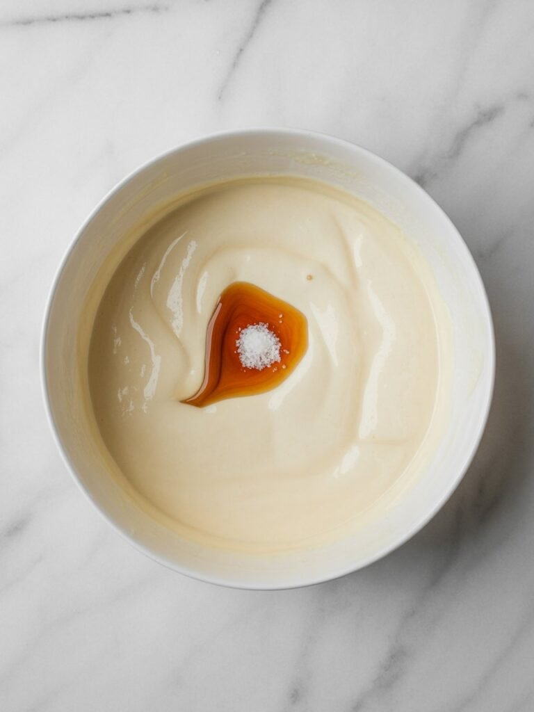 Stir in the vanilla extract and the pinch of salt. This step enhances the flavor significantly and adds depth to the sweetness.