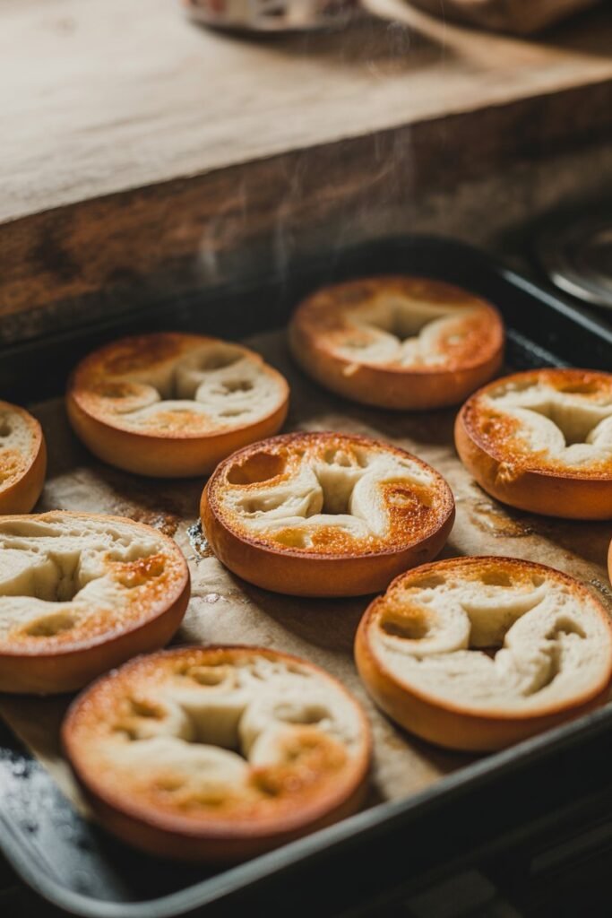Toast bagels until golden but still soft inside.