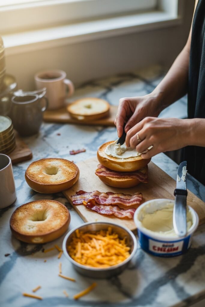 - Use Sharp Cheddar – It cuts through the richness of the cream cheese and bacon, giving the bagel that perfectly balanced flavor.