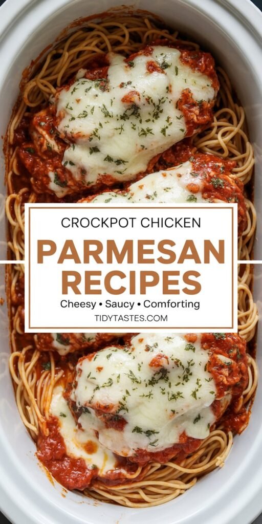 I usually serve this Crockpot Chicken Parmesan over spaghetti because it soaks up the sauce perfectly. You can use any pasta you like, from penne to fettuccine. If you prefer something lighter, it pairs beautifully with zucchini noodles or cauliflower rice.