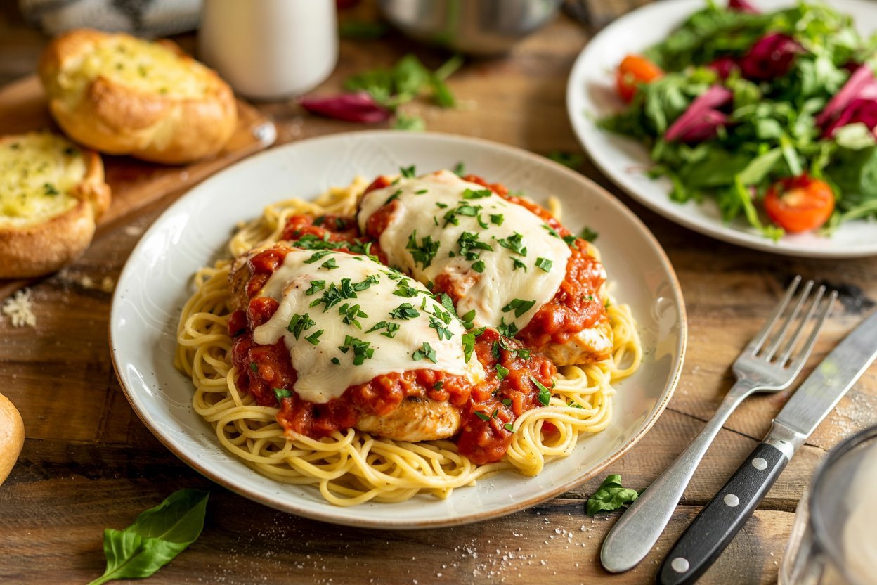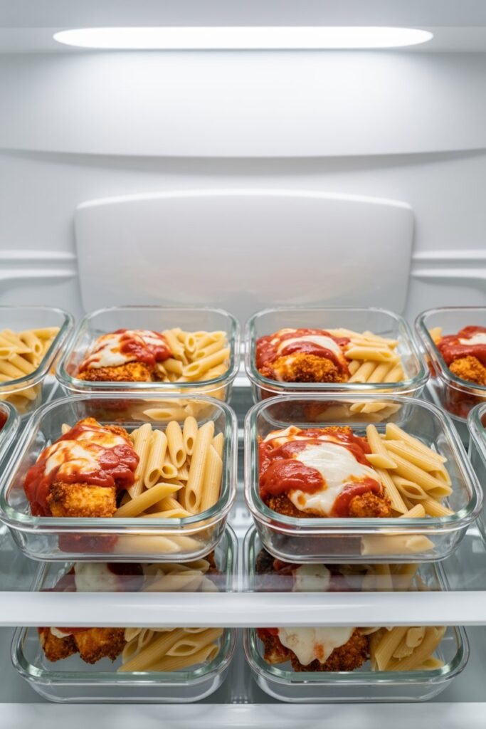 No frying needed: Traditional chicken parmesan can be messy with the breading and frying. This version gives you all the same comfort and flavor without dealing with oil or cleanup.