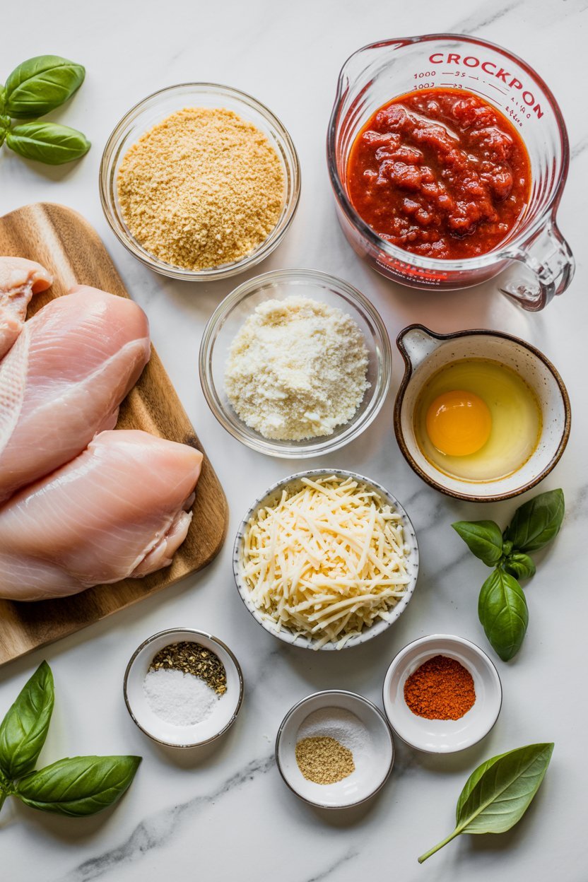 Here’s what you’ll need to make this Crockpot Chicken Parmesan recipe: