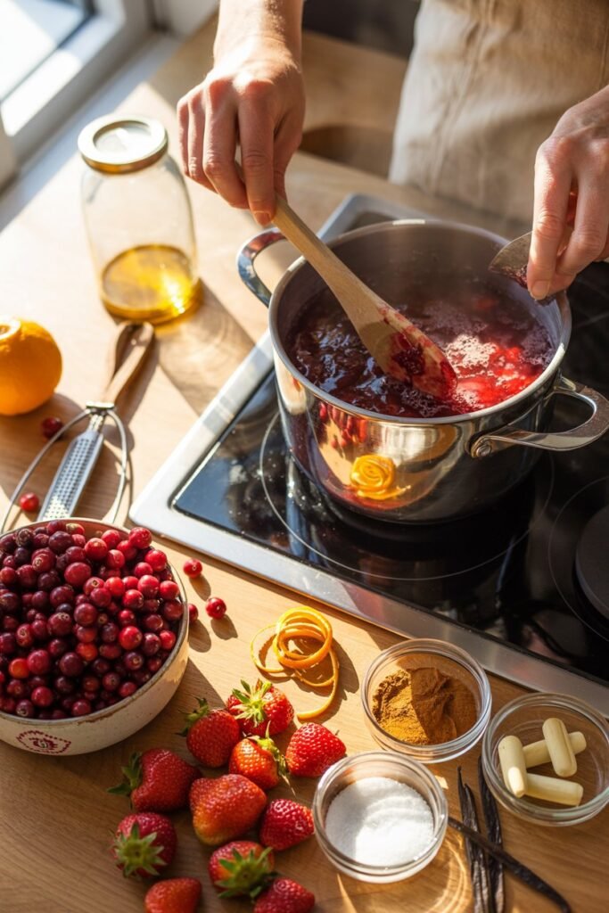 The first batch filled the house with the smell of simmering fruit, orange zest, and cinnamon, and when I spooned it into jars with little red ribbons, it looked like holiday cheer itself.