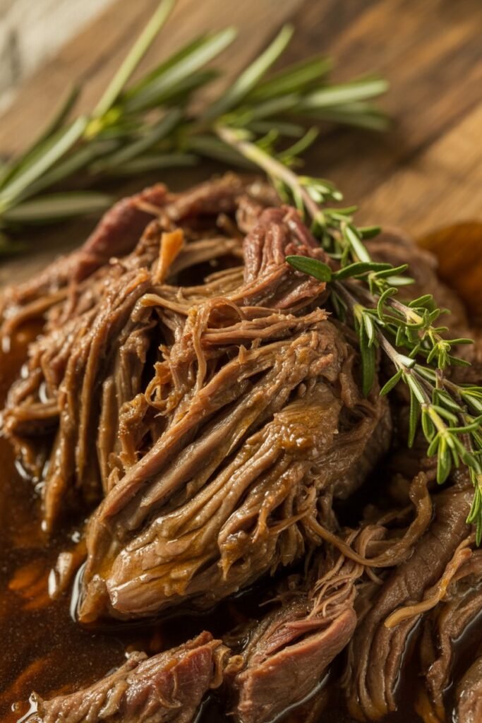 Choose the right cut of beef. Chuck roast is ideal because it has enough fat to stay juicy during long cooking. Lean cuts tend to dry out.