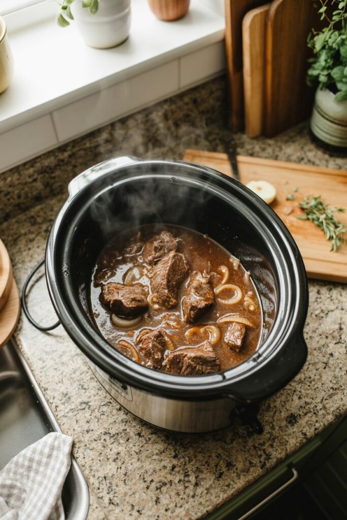 This is one of those recipes I started making on days when I needed dinner to take care of itself. The kind of day where you throw everything into the slow cooker, walk away, and let the house slowly fill with that deep, beefy smell that tells you something good is coming.