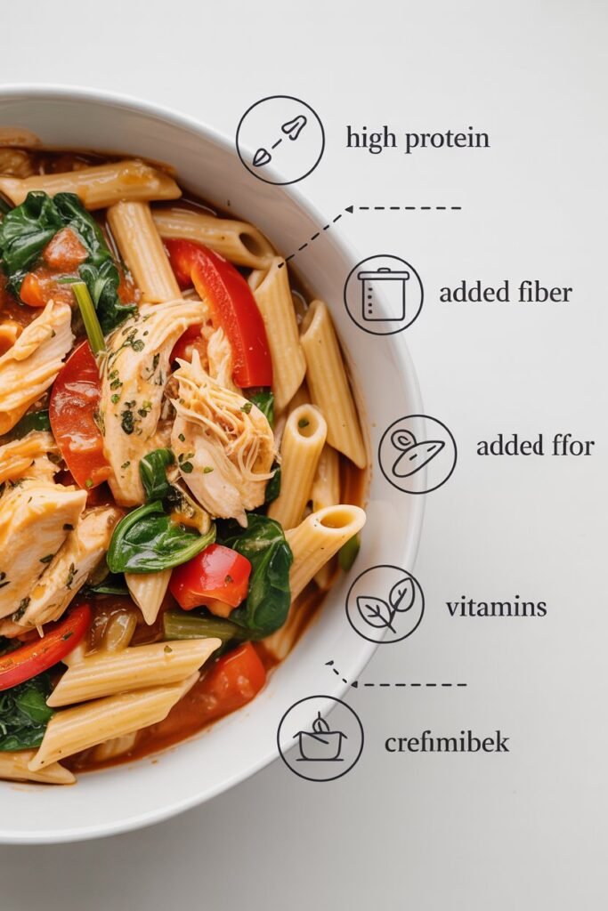 The chicken is packed with lean protein, which keeps me full and gives me energy throughout the day. I also love sneaking in extra veggies like spinach, peppers, or mushrooms because they add fiber, vitamins, and minerals without changing the creamy, cheesy goodness.