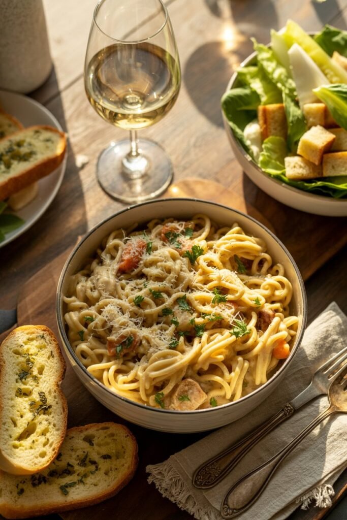 - A fresh salad like Caesar or mixed greens for a crisp contrast