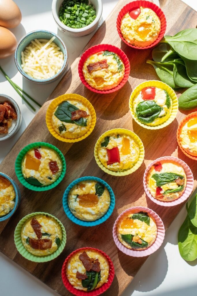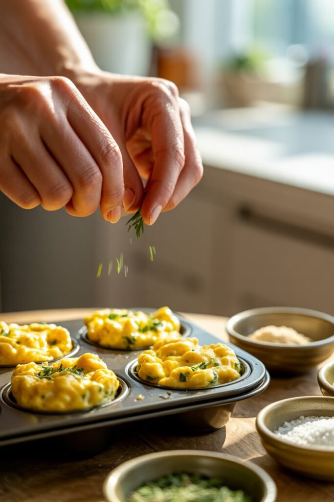 Fresh herbs like chives, parsley, or basil brighten the flavor and add a pop of color that makes the egg bites feel fresh and vibrant.