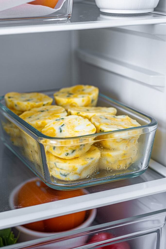 I usually store leftover egg bites in an airtight container in the refrigerator for up to four days. When I’m ready to eat them, I reheat them in the microwave for 20 to 30 seconds or until warm.