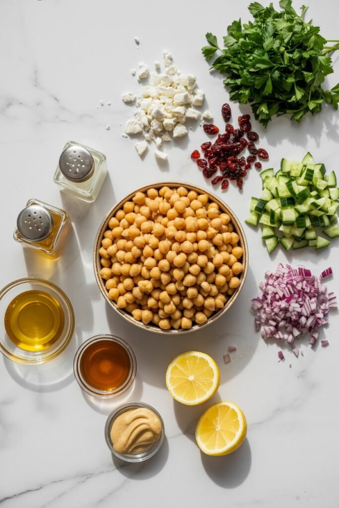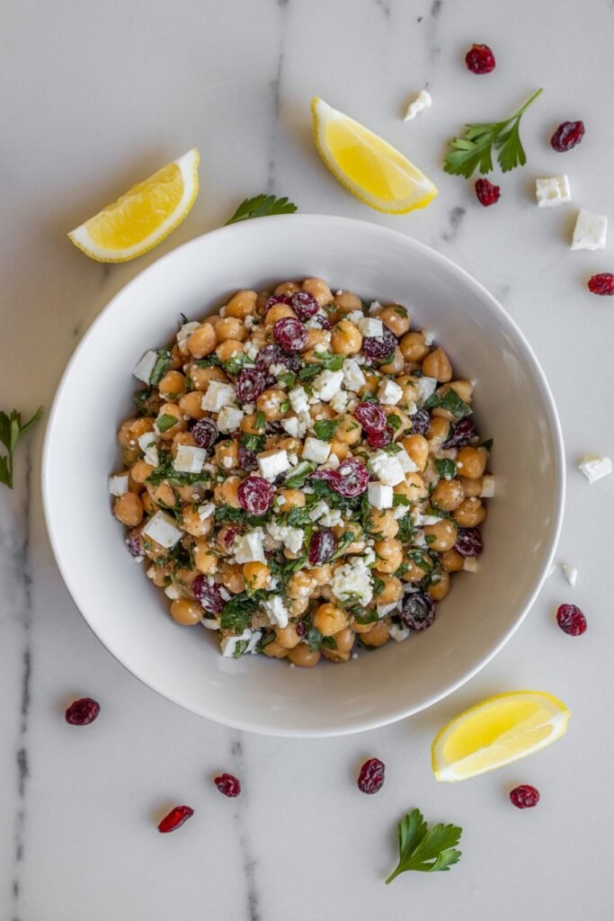 Feta & Cranberry Chickpea Salad with Lemon Vinaigrette