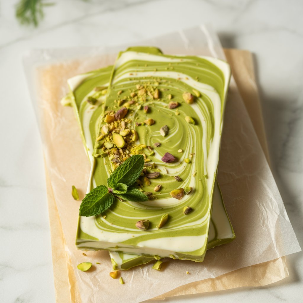 This bark is unique and earthy. Matcha gives you caffeine + antioxidants, while pistachios provide crunch and protein.