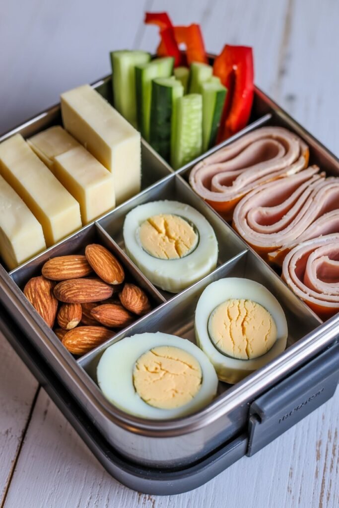 - Snacks: Hard-boiled eggs, cheese sticks, or almonds