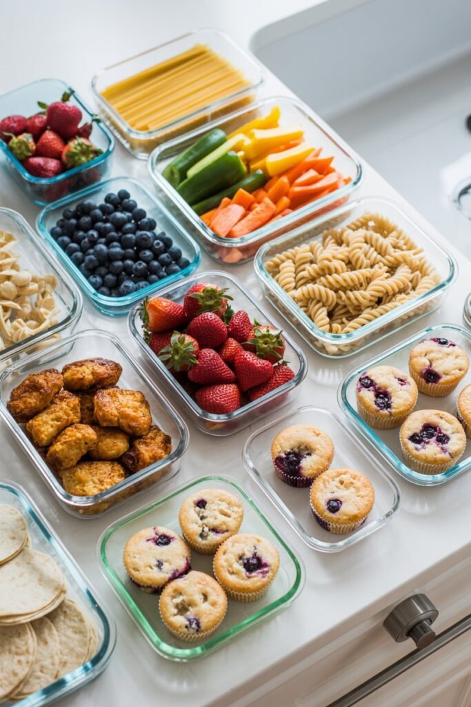 A: Absolutely. Recipes like chicken nuggets, pasta salads, mini muffins, and wraps can all be prepped on Sunday or the night before.