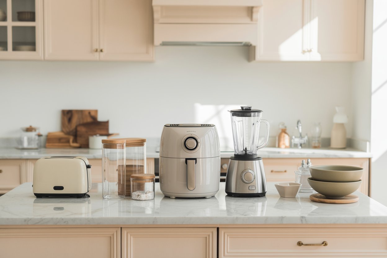 The best part? You don’t need a full renovation to achieve the look. With a few well-chosen essentials — appliances, tools, and décor that blend function with modern beauty — you can transform your kitchen into a serene sanctuary.