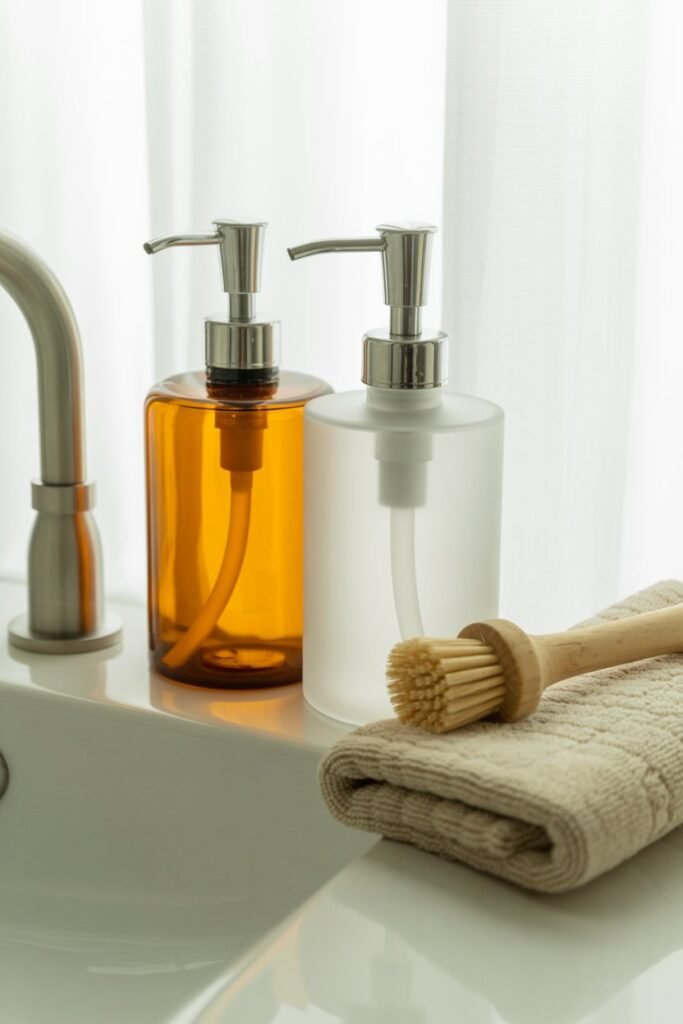 Say goodbye to clunky branded bottles. These matching glass dispensers in amber, clear, or frosted white look elegant by the sink and make your kitchen instantly feel more put-together.