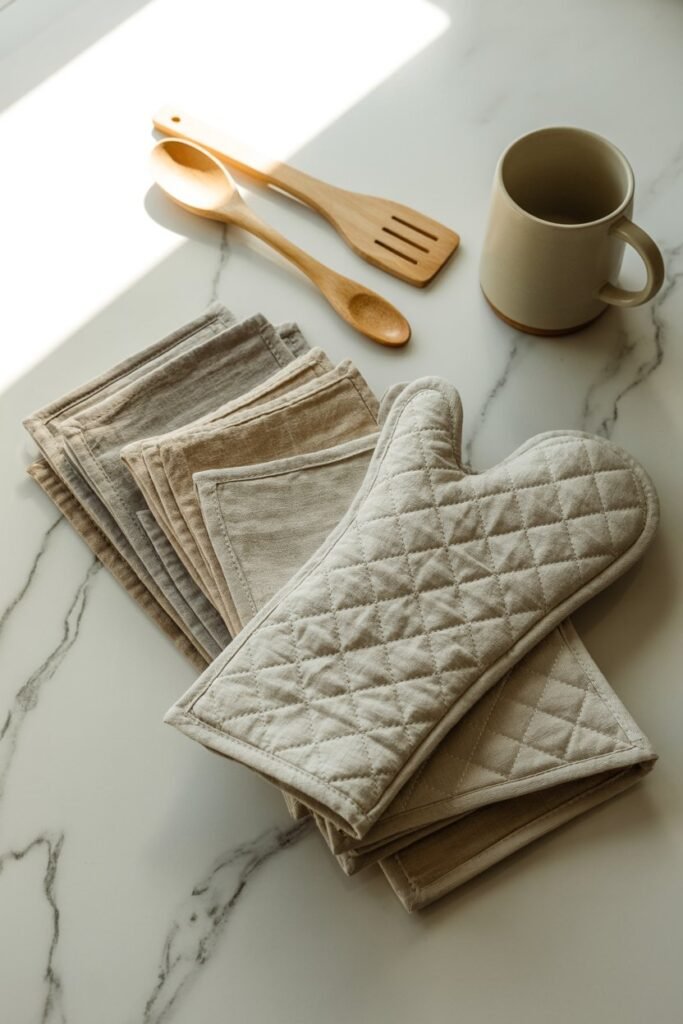 Get it on Amazon11. Neutral Fabric Dish Towels & Oven Mitts